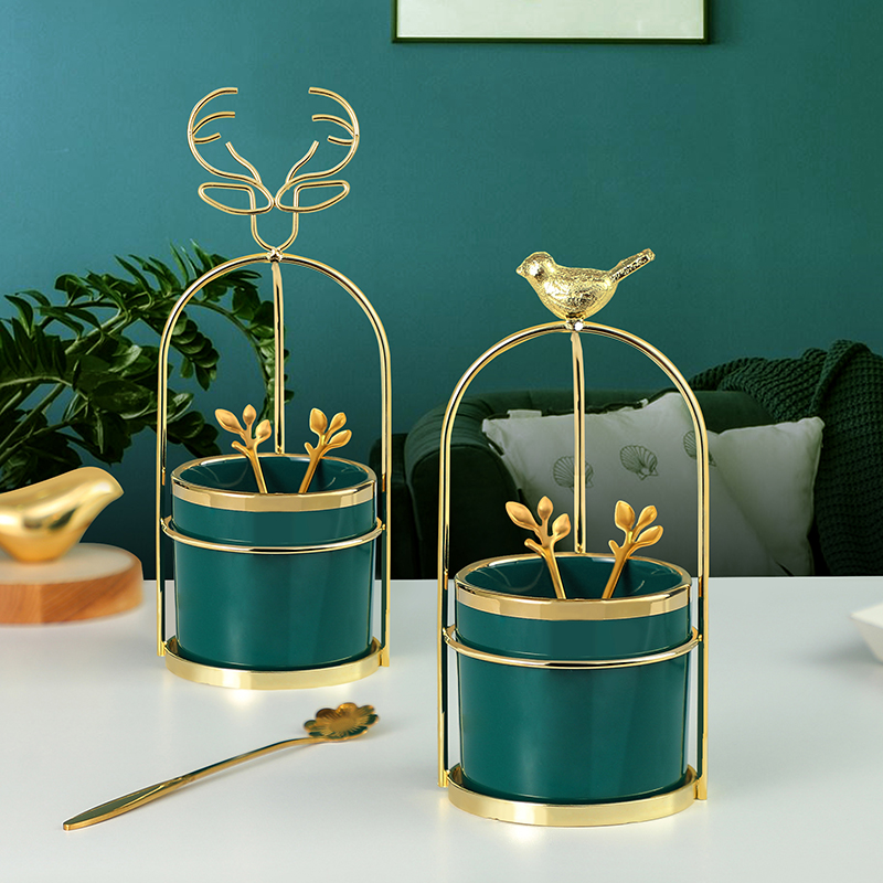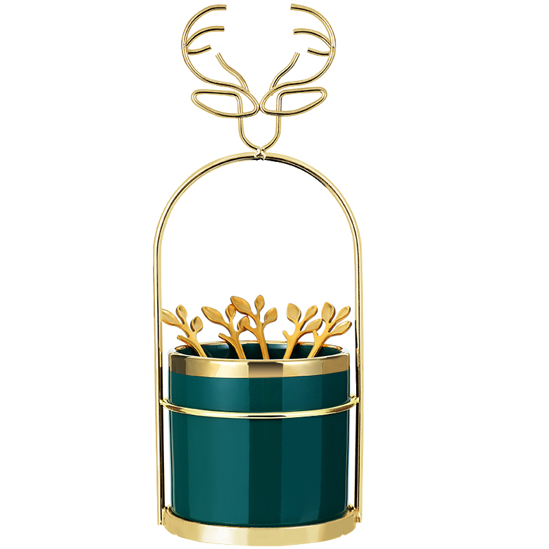 Transparent white Milky white Silver Apricot gray Dark green Gold yellow Ginger Dark green ceramic jar-Bird shelf fruit fork 6 dark green ceramic jar—Fu Lu shelf fruit fork 6 dark green ceramic jar—