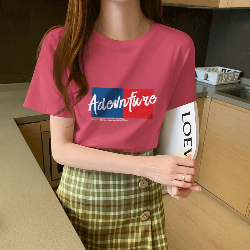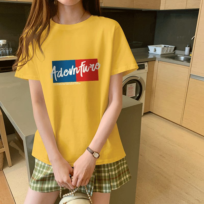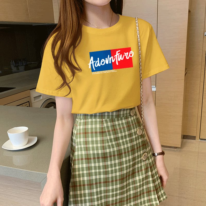 Short sleeve pink T-shirt women Summer ins tide Net red 2021 New half sleeve cotton yellow clothes loose T-shirt