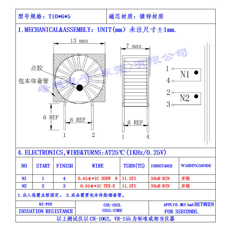 Total Mode Inductor T10*6*5 Nickel Zinc Material 0 45 Line 11 laps 38UH 3A Magnetic Cycle Inductor Coil plus sleeve