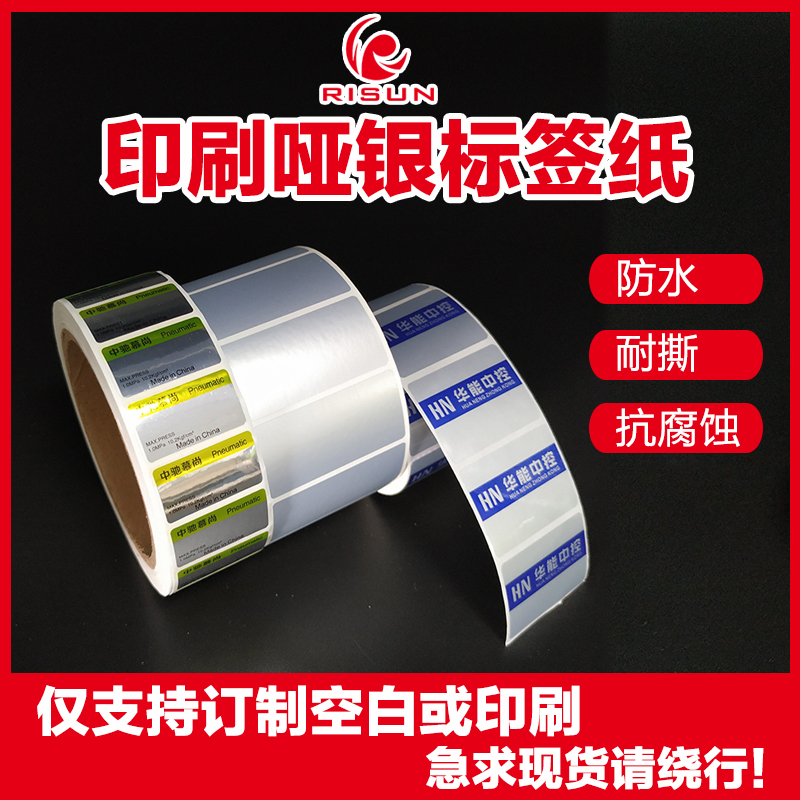 Custom printing light silver label paper Light silver self-adhesive color printing dumb silver bar code paper label paper custom