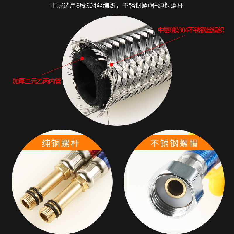 4 minutes stainless steel wire pointed hose anti-explosion metal single hole hot and cold kitchen vegetable basin face basin tap water inlet pipe-Taobao