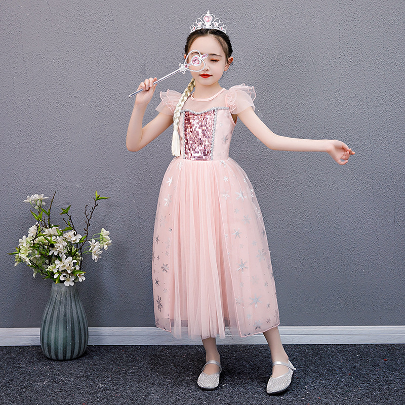 Ice Chic Edge 2 Esha Princess Dresses Dresses Dresses Girl Summer Style Short Sleeve Children Birthday Gown