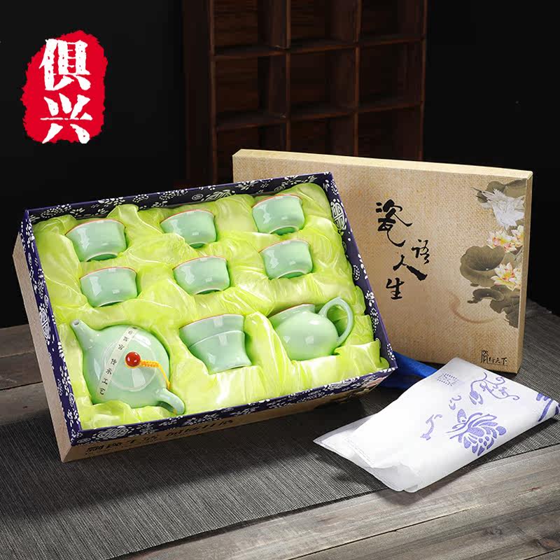 Creative Blue Porcelain Streak Six Gentleman Kung Fu Tea Furniture Household Brief Suit Upscale Office Ceramics Business Gift