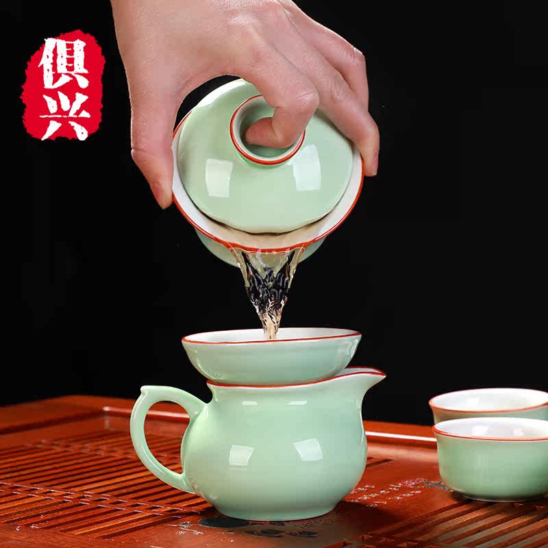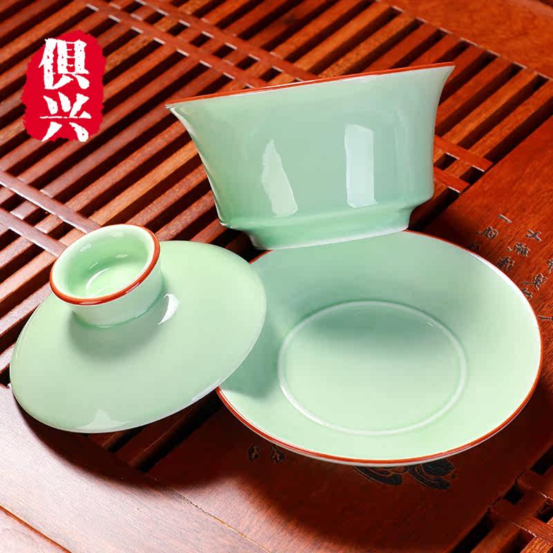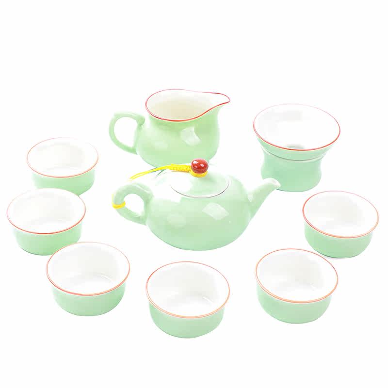 Green Porcelain Cover Bowl set with green porcelain teapot suit