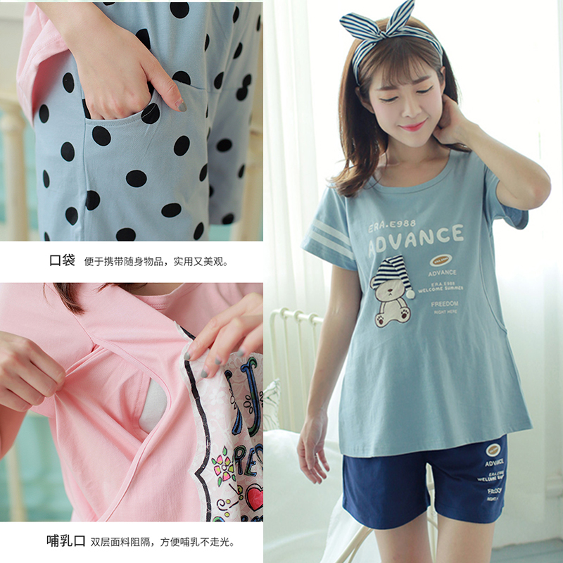 Lunar Subsuit Spring and Autumn Pregnancy September 8 Pure Cotton Hospitalizations Breastfeeding Pregnant Pregnant Woman Pyjamas Maternal Lactation Summer