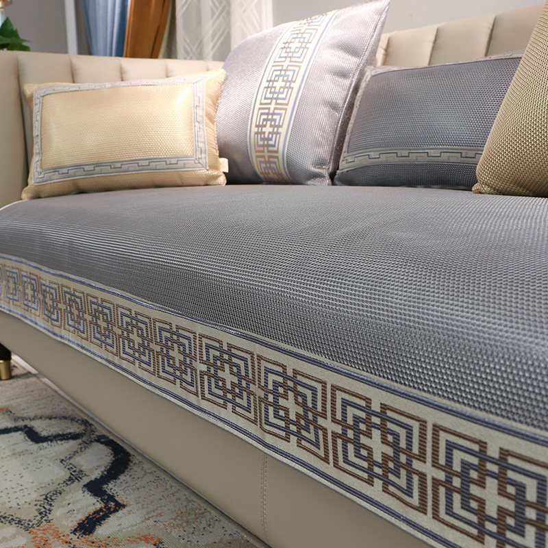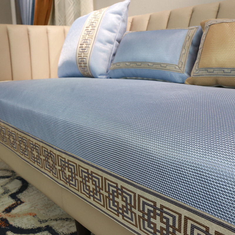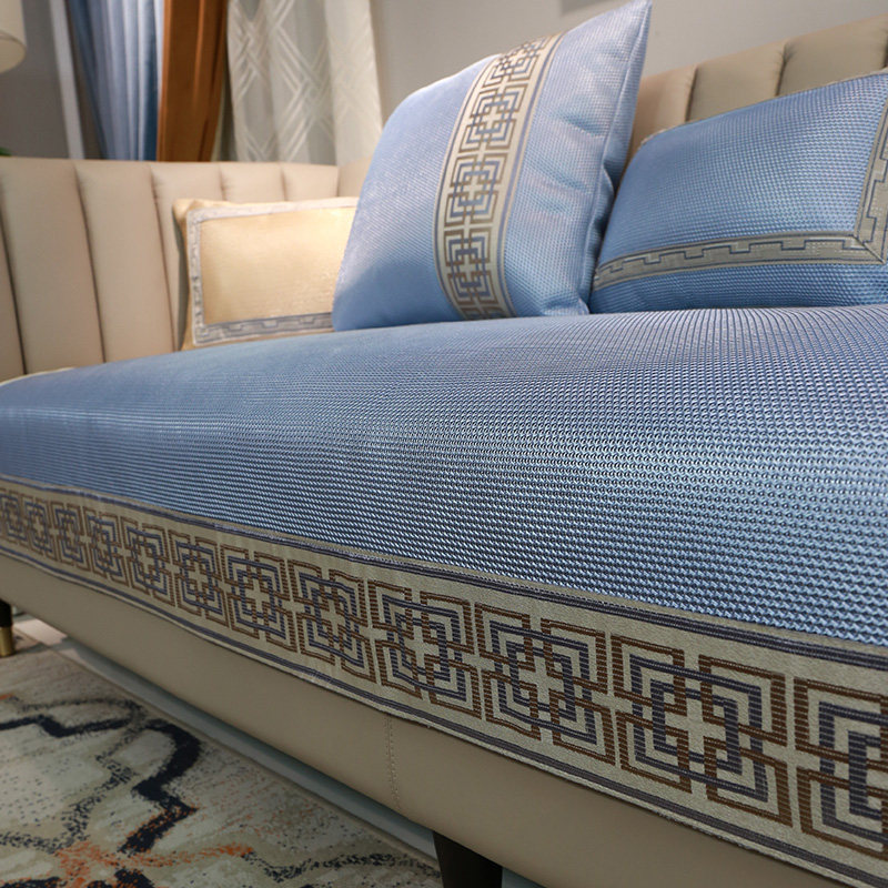 Summer ice silk sofa mat cool mat modern light lavish high-end non-slip European-style leather sofa cover all season universal-Taobao