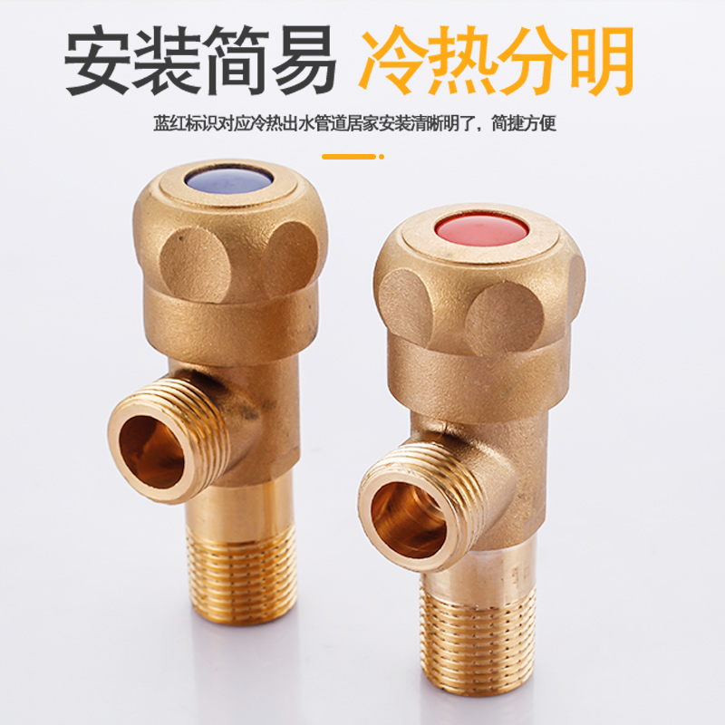 All copper Copper natural color angle valve (blue label) All copper copper natural color angle valve (red label) Copper natural color angle valve Type B - blue Copper natural color angle valve B type - red Copper teeth three wheel angle valve (blue label