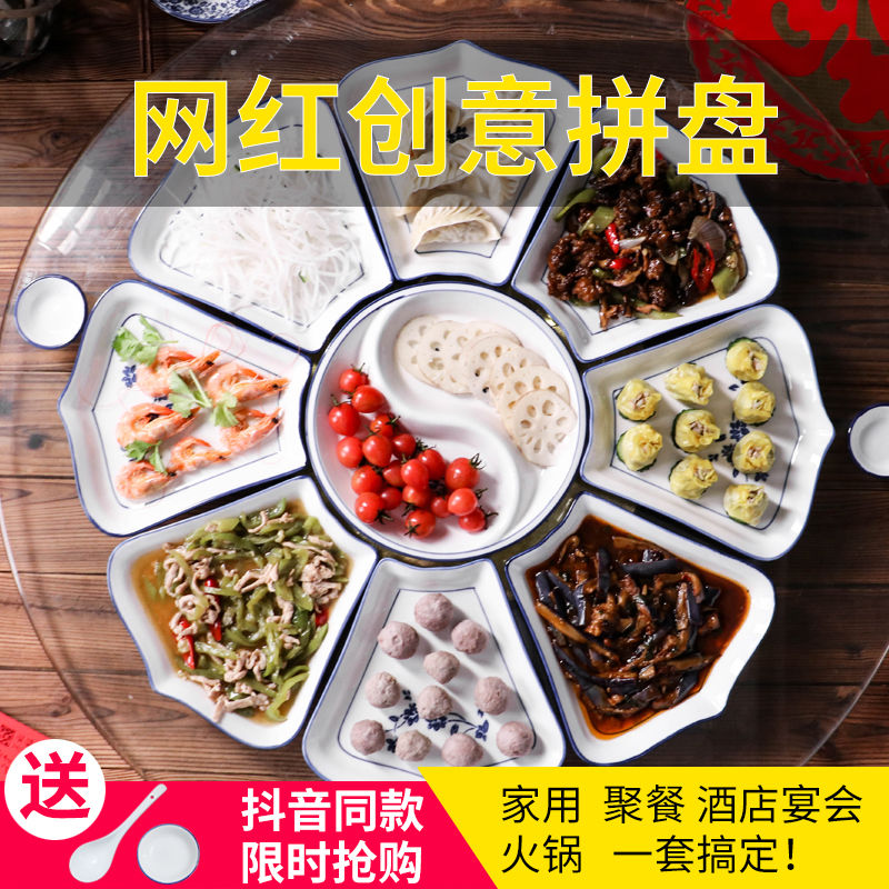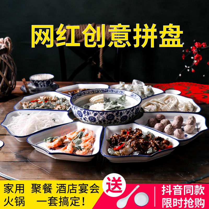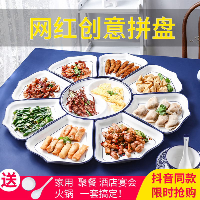 Net red tableware ceramic platter special tableware household plate combination creative reunion dinner fan-shaped plate set