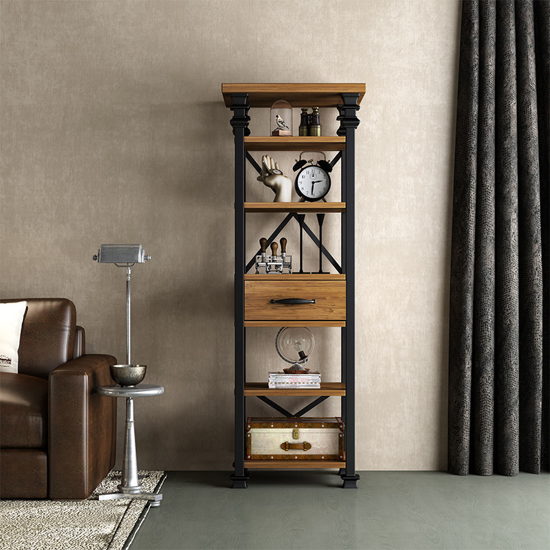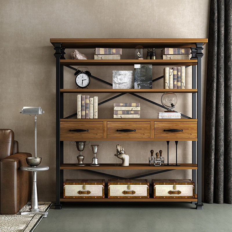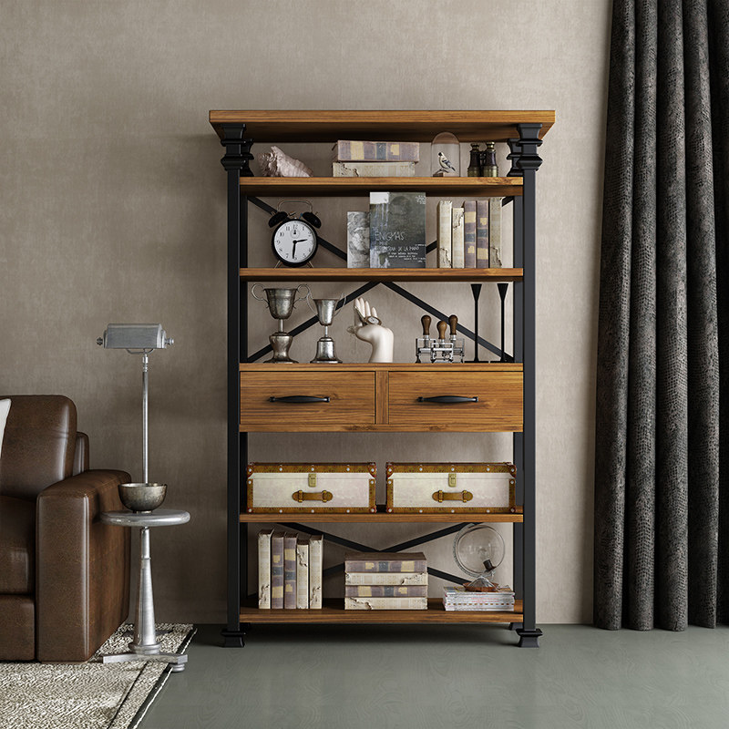 LOFT industrial style solid wood bookshelf office retro wrought iron shelf living room floor-to-ceiling bookcase multi-layer partition shelf