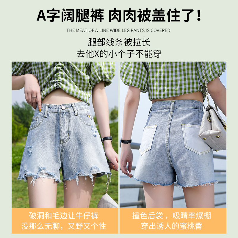 Small Daisy Breaking Hole Cowboy Shorts Women Summer 2021 New High Waist Display Slim Loose A Character Net Red Ins Hot Pants Tide