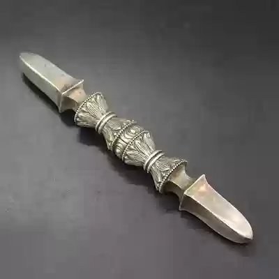 Antique miscellaneous collection Antique Nepalese artifact One-word Vajra White copper Vajra artifact