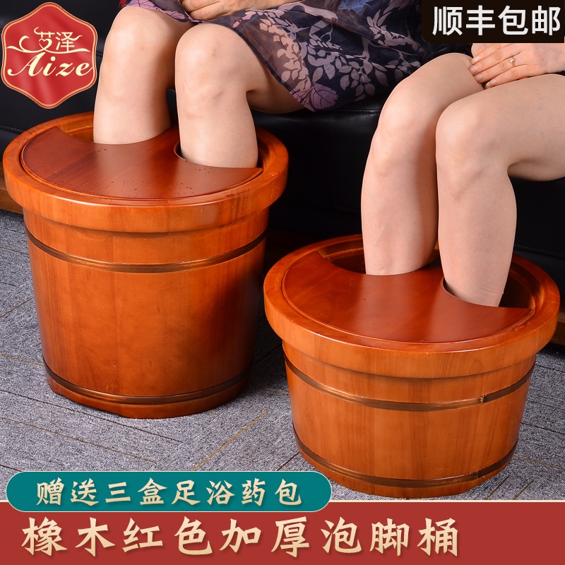 Red foot bath wooden basin Foot wash household wooden basin Foot bath Solid wood small wooden barrel Foot massage Foot health thermostat barrel