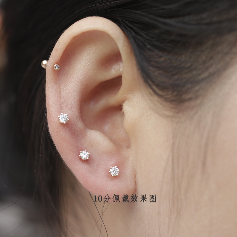 Diamond stud earrings male and female true diamond fancy gold 18K gold rose gold platinum Au750 six-prong small diamond screw ear bone studs