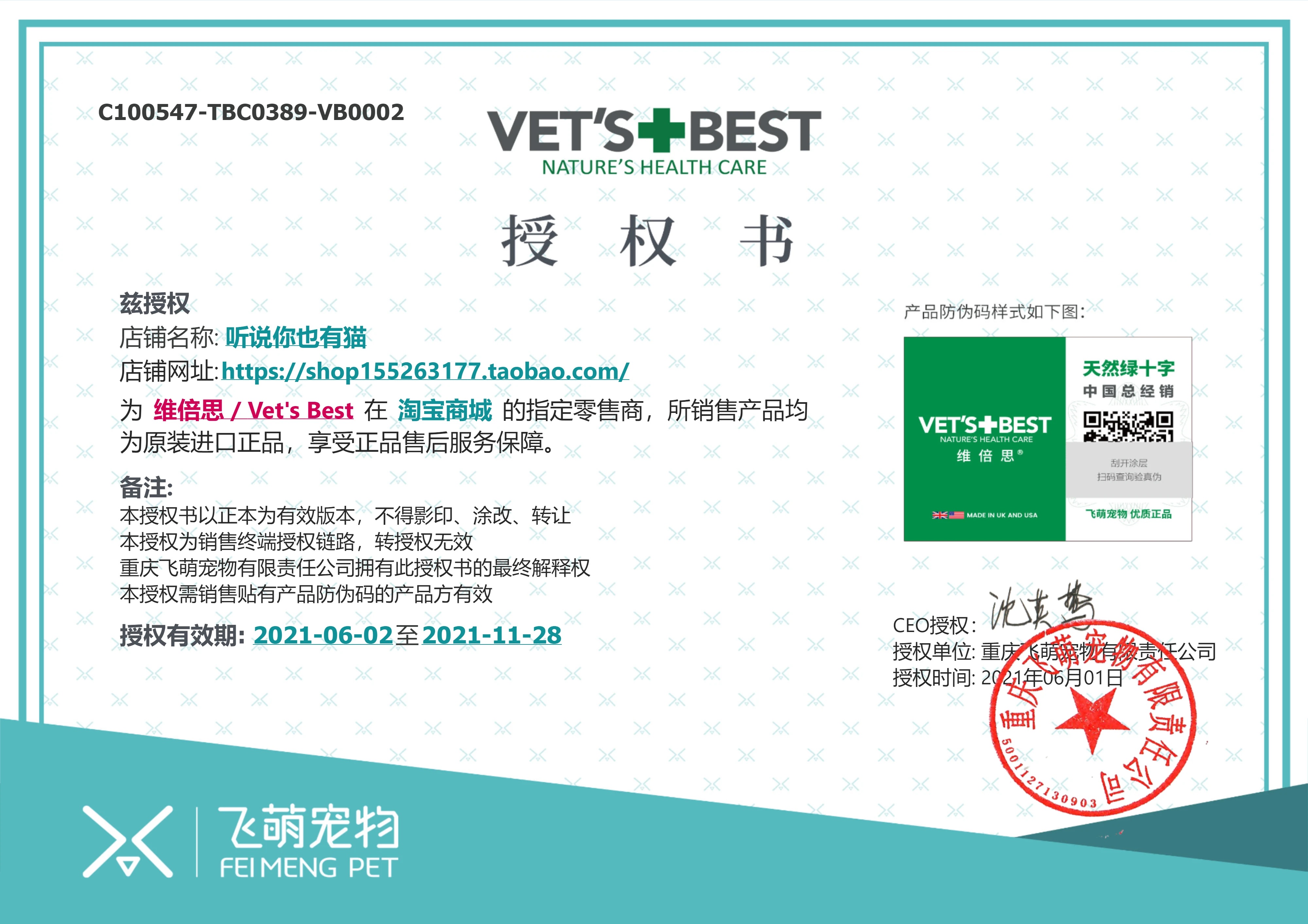 Spot has authorized VETS BEST US Green Cross Cat Grass Slice Fur Kitty