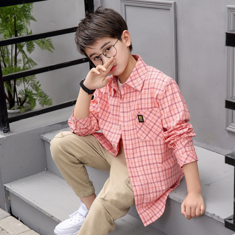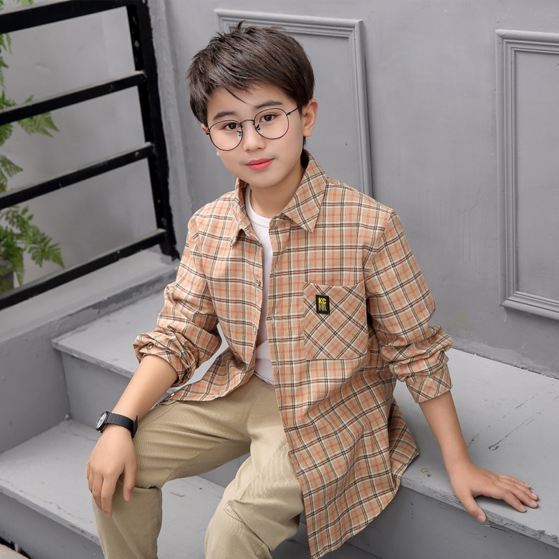 New children's clothing spring dress children's plaid shirt loose thin middle school boy long sleeve shirt boy Spring and Autumn Tide