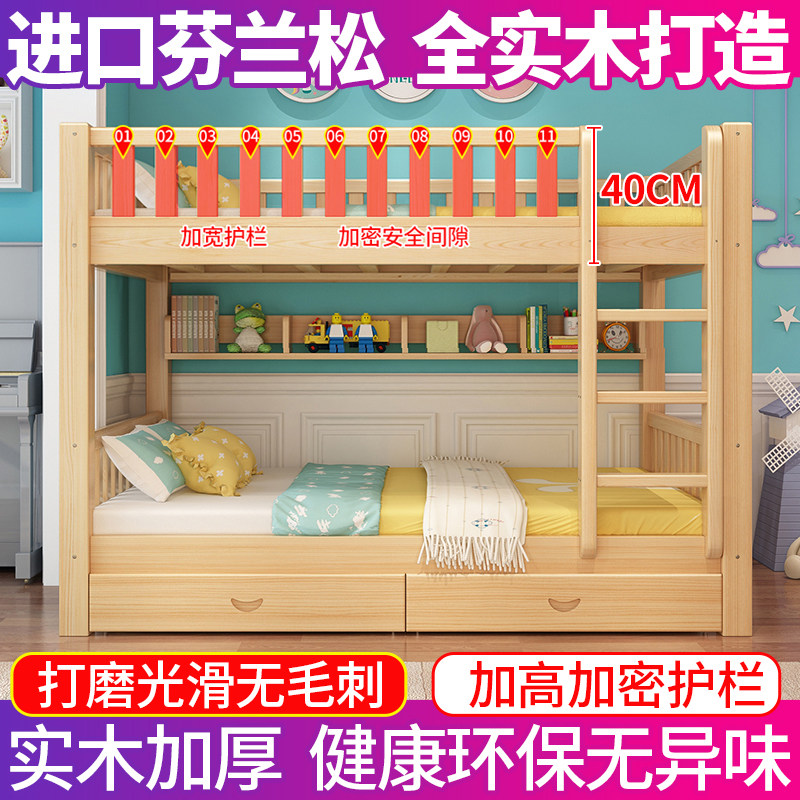 Upper and lower bunk beds Double floor full solid wood Double beds adults Two floors Dormitory High and low beds Children's primary and secondary bed up and down bed