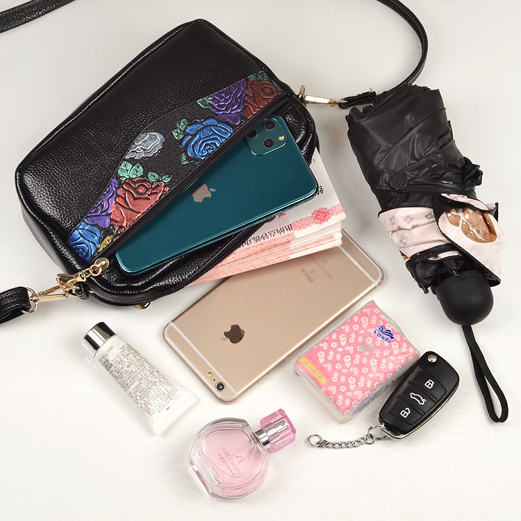 Embossed soft leather messenger women's bag casual large-capacity one-shoulder coin purse fashion mother mobile phone umbrella storage bag