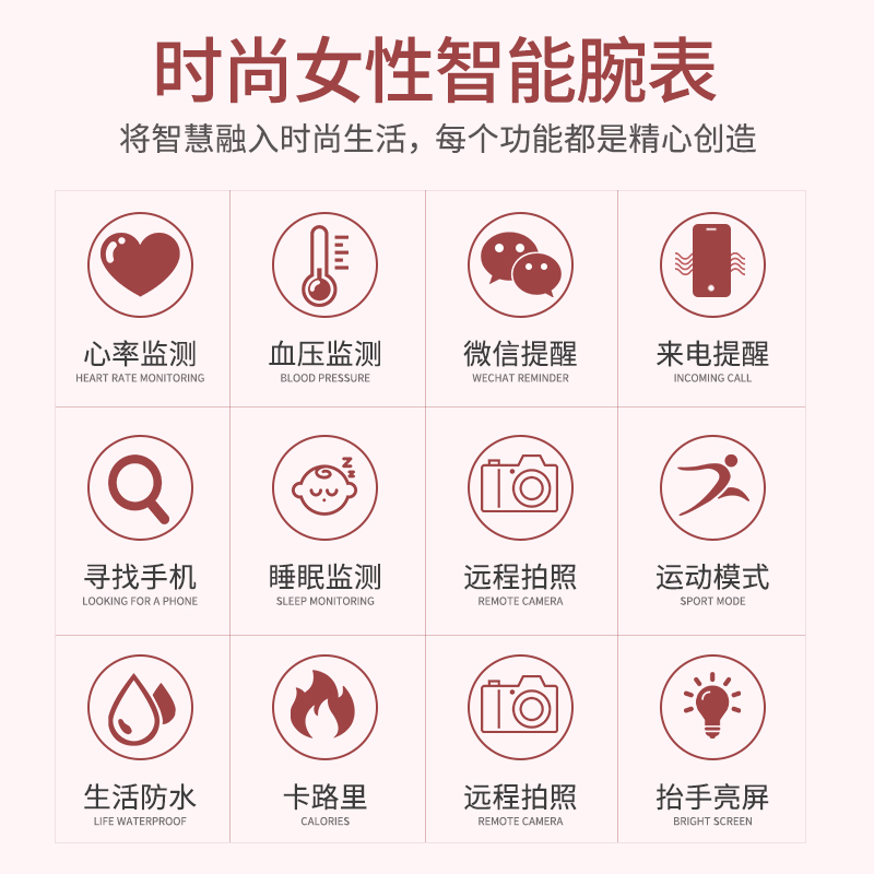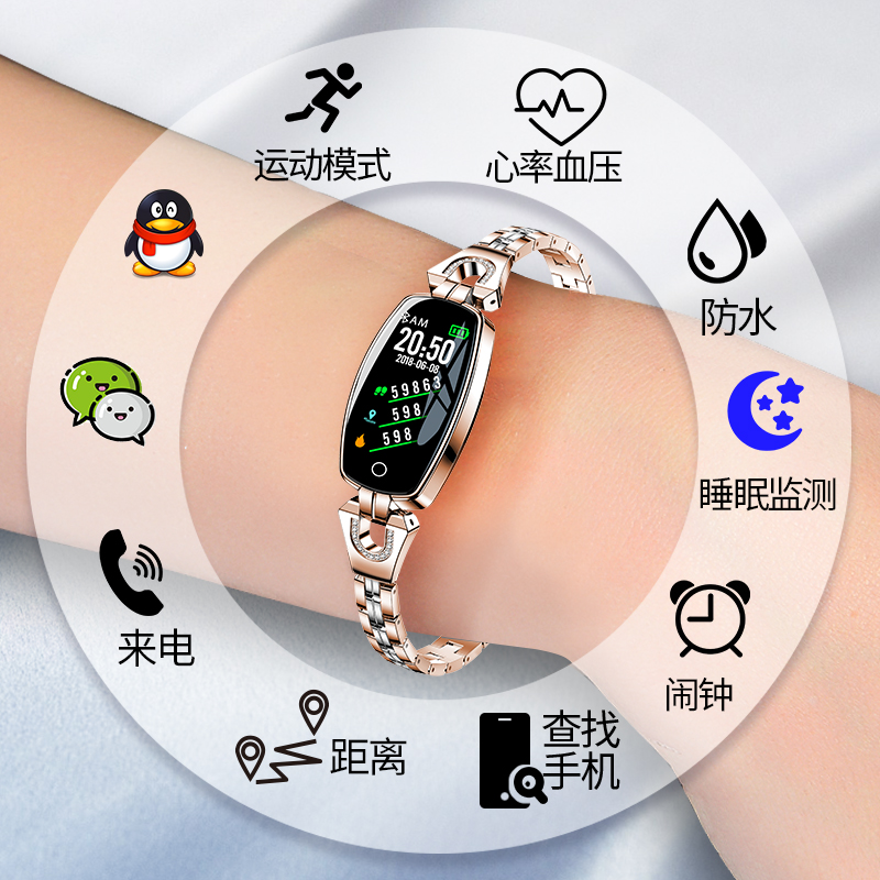 Multifunction Smart Bracelet Waterproof Sleep Monitoring Blood Pressure Heart Rate 4 Lady Jewelry Women Sports Watches Wrist 5 Bluetooth 3 Pedometer 2 Apply Huawei Oppo Xiaomi Vivo Apple Anjo