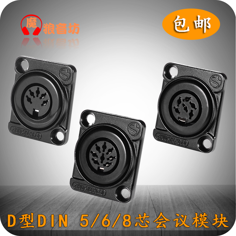 D-type DIN hand-in-hand conference module audio microphone 5 6 eight-core socket welding 86 panel mount seat