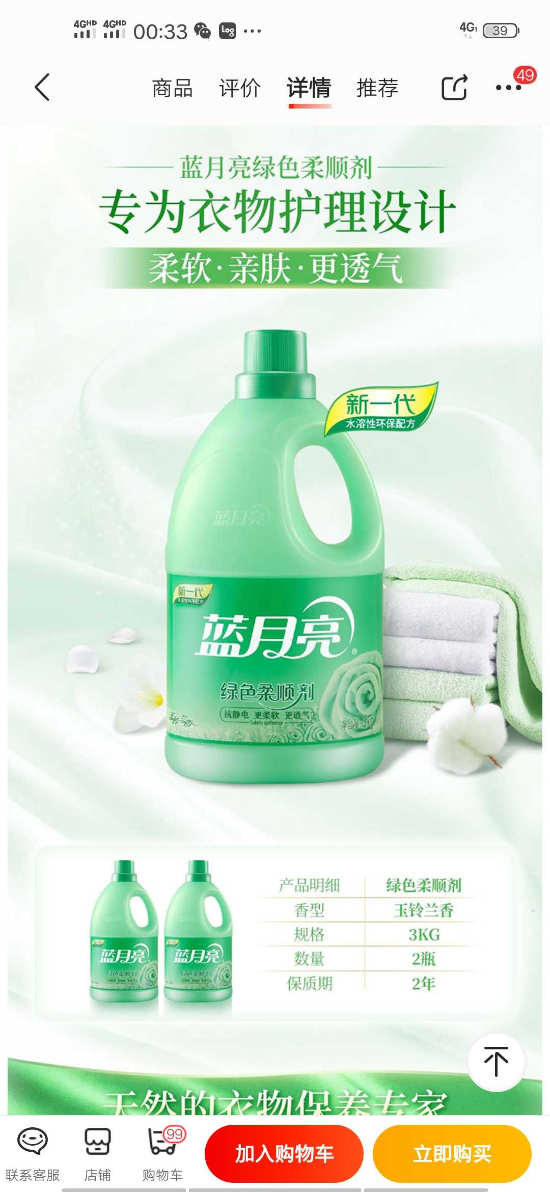 Blue Moon softener 3kg*4 bottled jade lily orchid fragrance clothes care agent soft and breathable special price nationwide