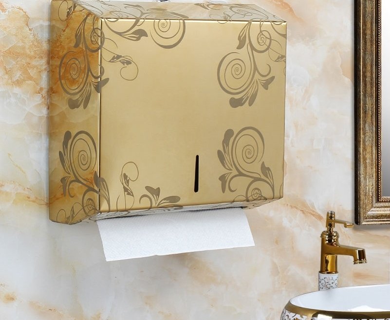 Home Kitchen Hand-washing Table Wall-mounted Grass Cardboard Boxes Stainless Steel Dressing Room Sanitary Cardboard Boxes Retro Paper Towel Holder box