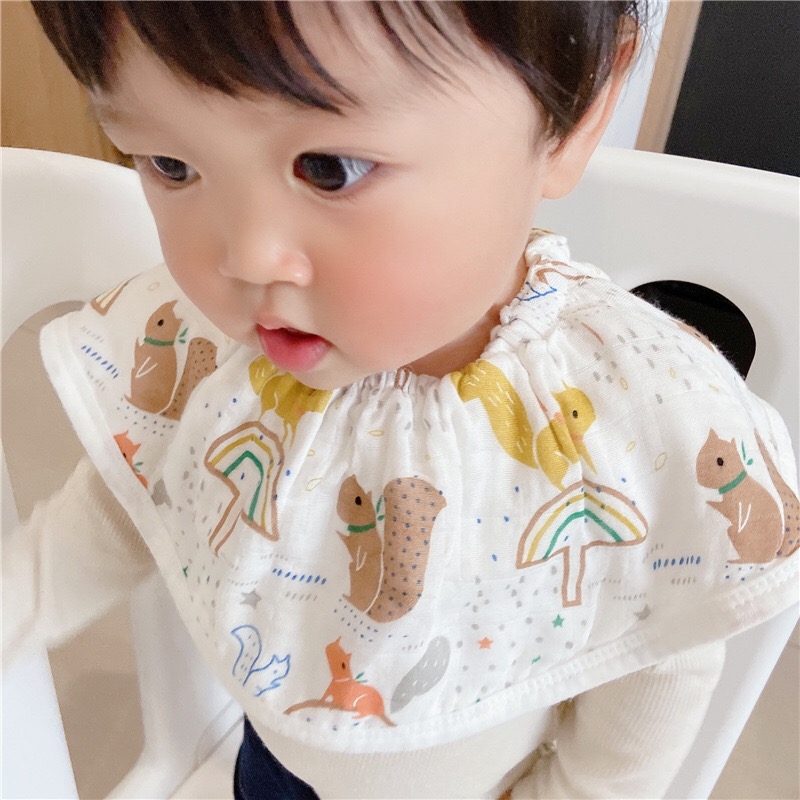 Summer thin saliva towel baby 360 degree rotatable round bib Baby cotton gauze plus bib
