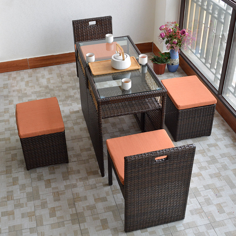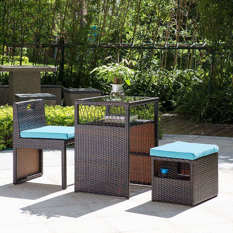 Outdoor balcony small table and chair combination net red rattan chair three-piece set storage household small apartment casual sun protection simple