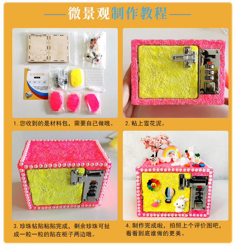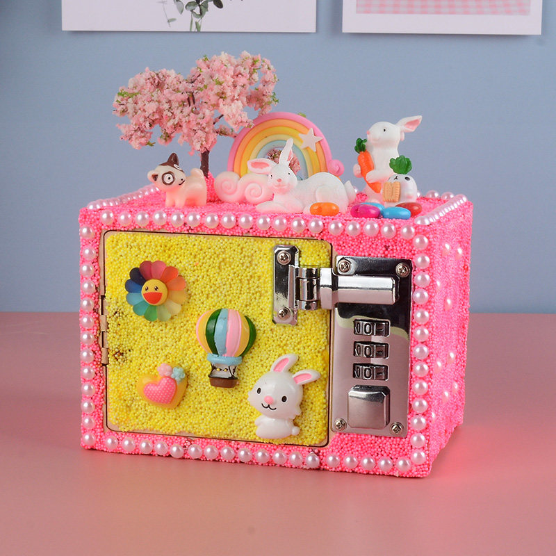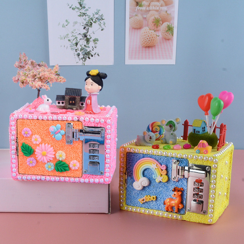 Children's day DIY snow mud technology password box material package Micro-landscape piggy bank hand paste making toys