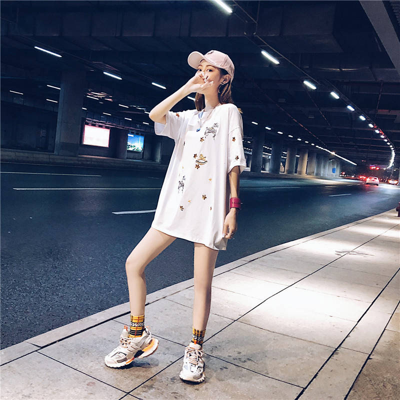 Tide Card Tennis Red Fashion Short Sleeve T-shirt Woman 2020 Summer new large size Dress Loose Ins overfire Long version of the blouse