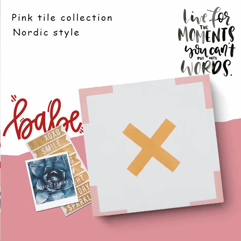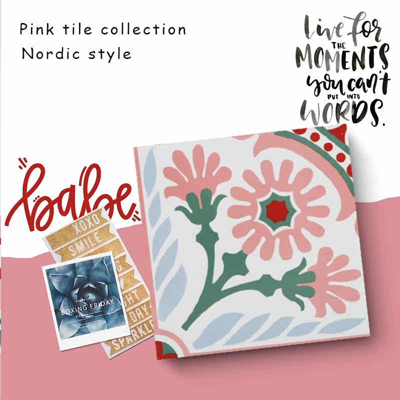 Wo pan Nordic net red pink small flower brick 300 full porcelain kitchen bathroom Mind floor tile wall brick anti-wear and abrasion resistant