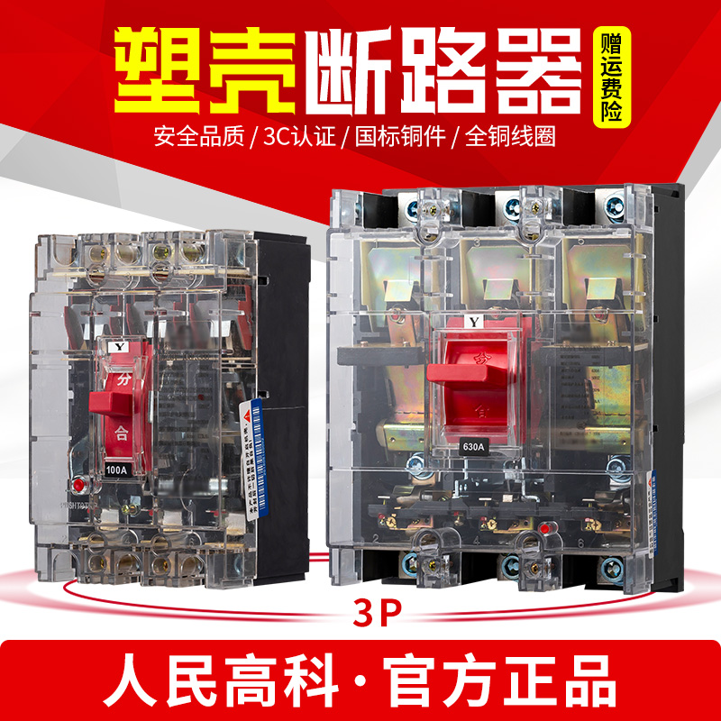 Shanghai People's transparent DZ20 three-phase four-wire plastic shell breaker 3P high-power switch 380V air switch