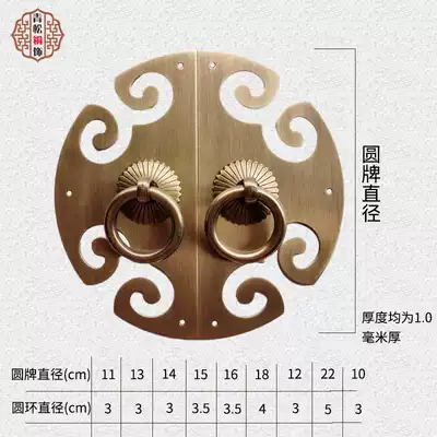 Chinese antique pure copper cabinet door handle Retro all copper wardrobe door Integral cabinet door Copper handle round lace round door number