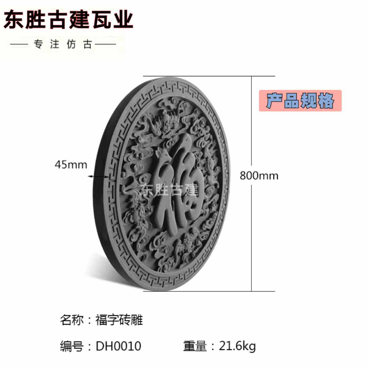 Hot Pin Chinese Courtyard Illuminated Wall Screen Shadow Wall Wall Imitation Ancient Round Fu Character Brick Carved Wall Relief Crane Deer Tongfu