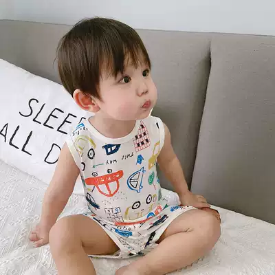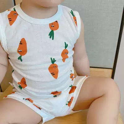 Summer baby cotton home clothes boy vest shorts set children sucking pajamas baby air conditioning clothing thin