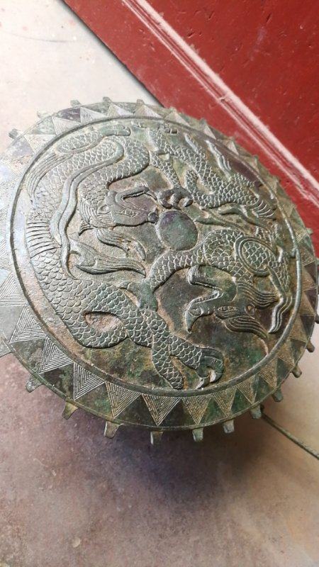 Imitation ancient bronzes 4-frame marmalade with light leather black lacquered ancient rusty antique hem