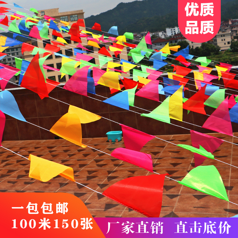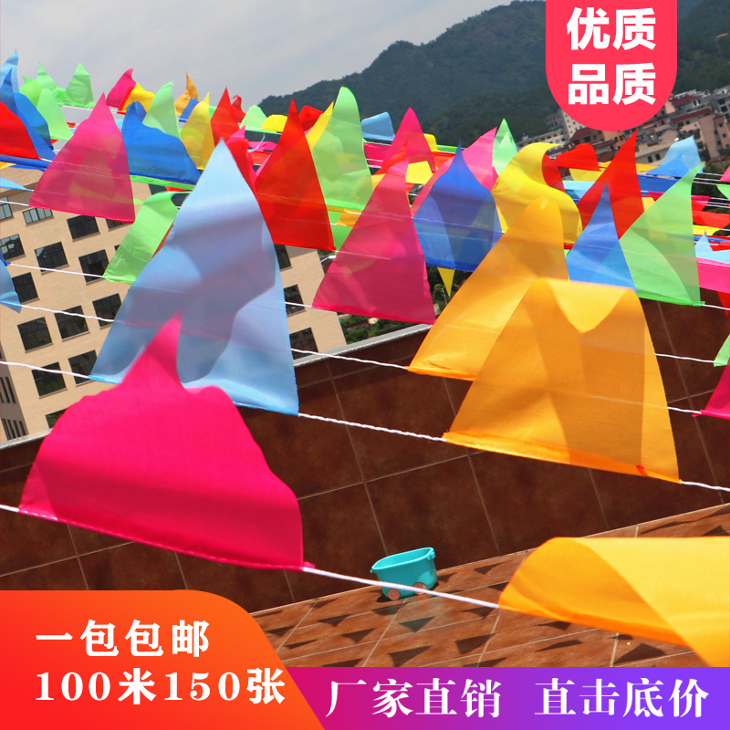 Bunting pennant string flag wholesale small bunting decoration hanging flag Wedding wedding pendant wedding color small red flag custom construction site cordon outdoor multicolored flag scene layout color bar hanging flag