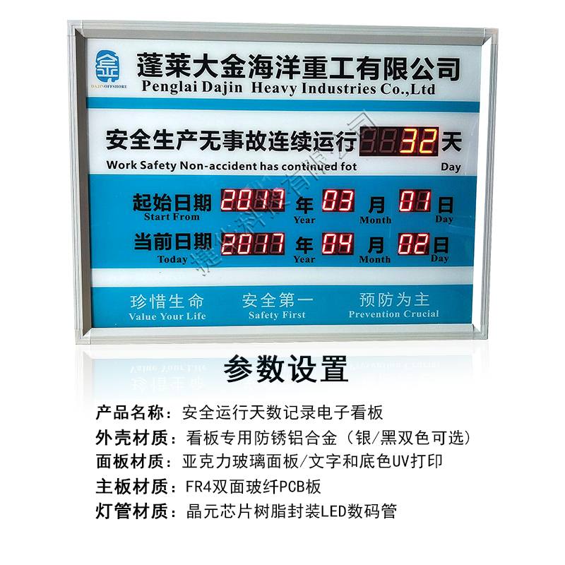 Customized waterproof outdoor professional accident-free display screen electronic kanban countdown for continuous safe production days