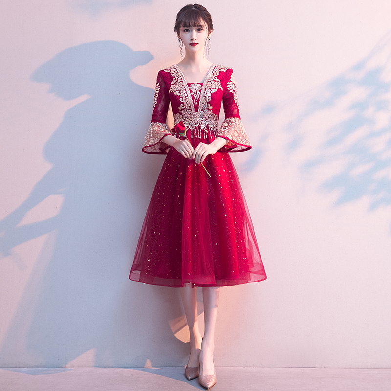 Pregnant women toasting clothes bride 2022 new Chinese wind cover belly small wine red wedding dress dress female