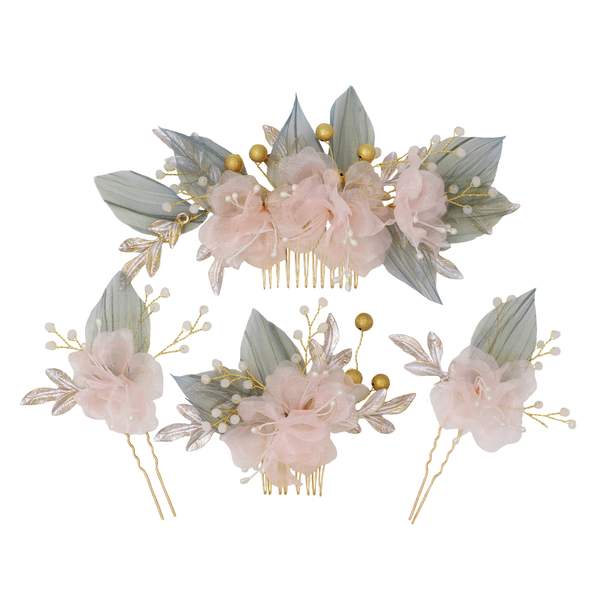 Mori Department Fresh Green Leaf Bridal Head Accessories Han Style Sweet Beauty Super Fairy Pink Flowers Wedding Hair Accessories Ancient Dress Accessories