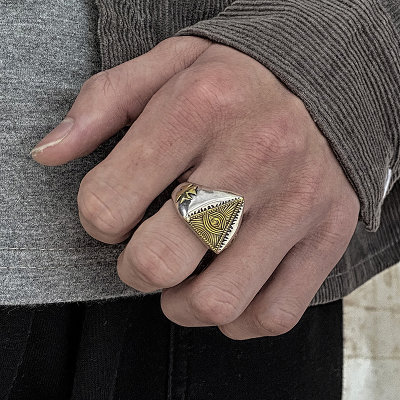 S925 Pure Silver God's Eye Personality Live Ring Horus Eye Overbearing Man Thai Silver Ancient Ring