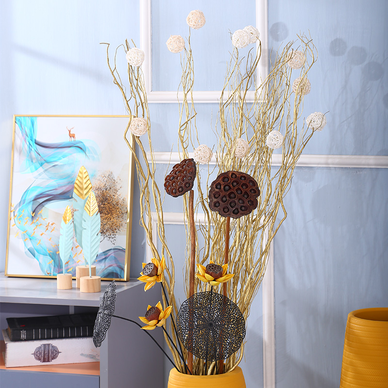 Trulugan branch dry flower tree living room with floor insert golden dragon willow vase Branches Wedding gongguan Xuanguan Partition Decorations-Taobao