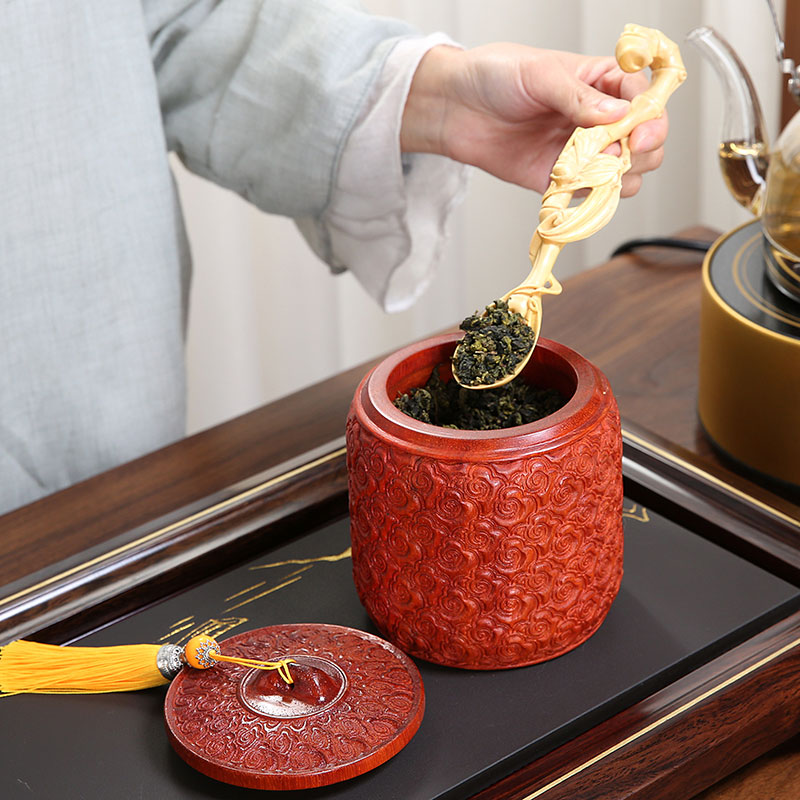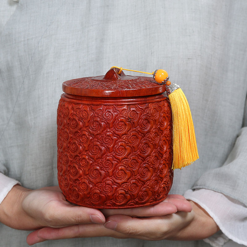 Blood sandalwood red wood tea leaf jars seal tank convenient and small number Japanese style flower tea Pu'er pot home creative tea set deposit money cylinder