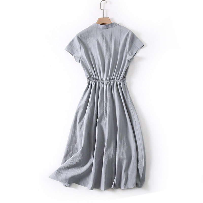 Must accept the foundation of the lazy skirt quiet neighborhood temperament ~ small in the long waist cotton V collar dress