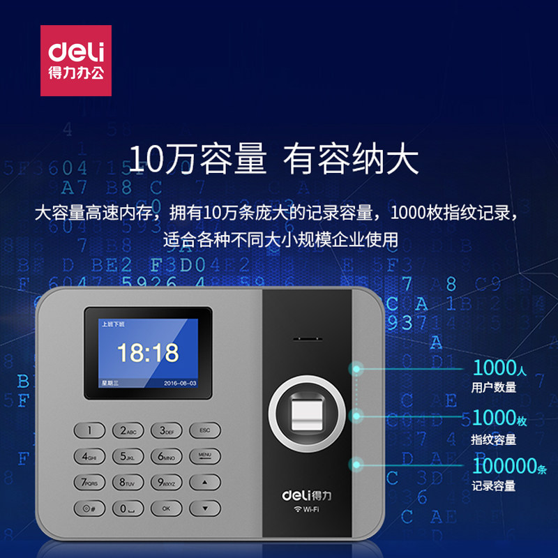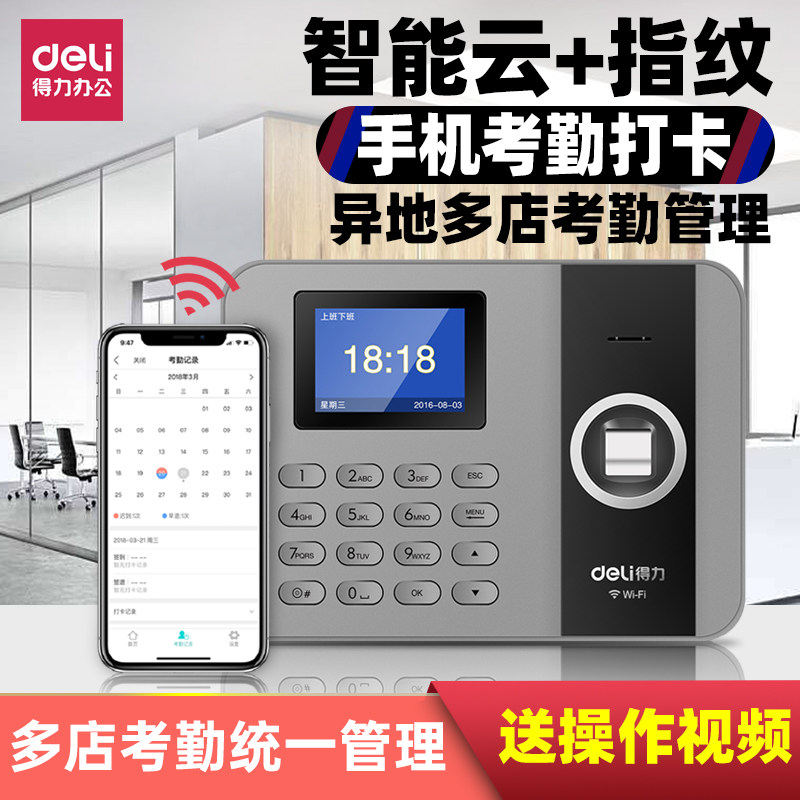 Deli 3761C fingerprint intelligent cloud attendance machine Commuting network punch card machine Plug network cable network mobile phone wireless check-in Remote multi-store branch remote unified attendance management