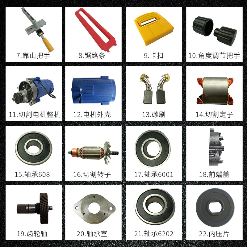 1 Safety cover 2 angle square square 3 safety switch 4 Extended countertop 5 leaning mountain component 6 leaning against the mountain bar 7 leaning the hill handle 8 saw bar 9 knob 10 angle adjustment handle