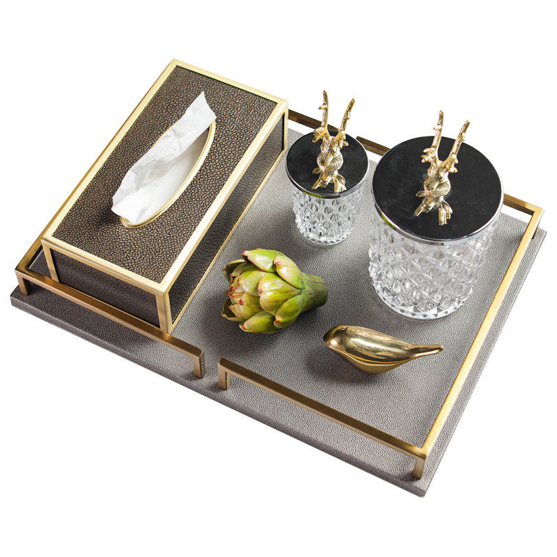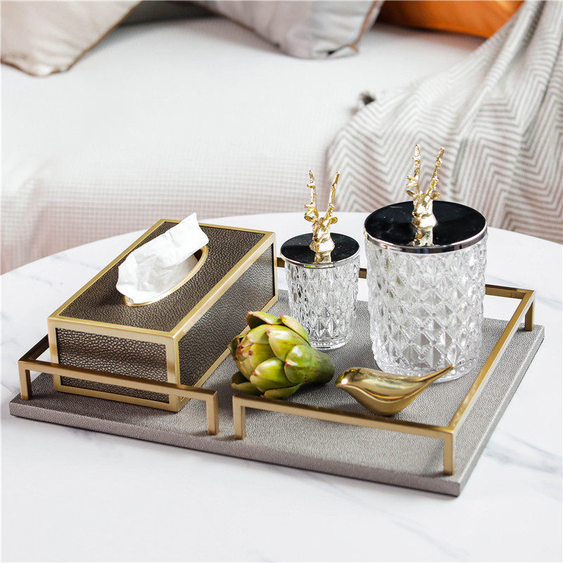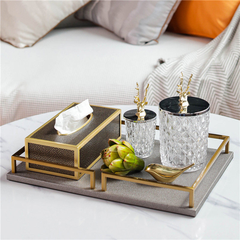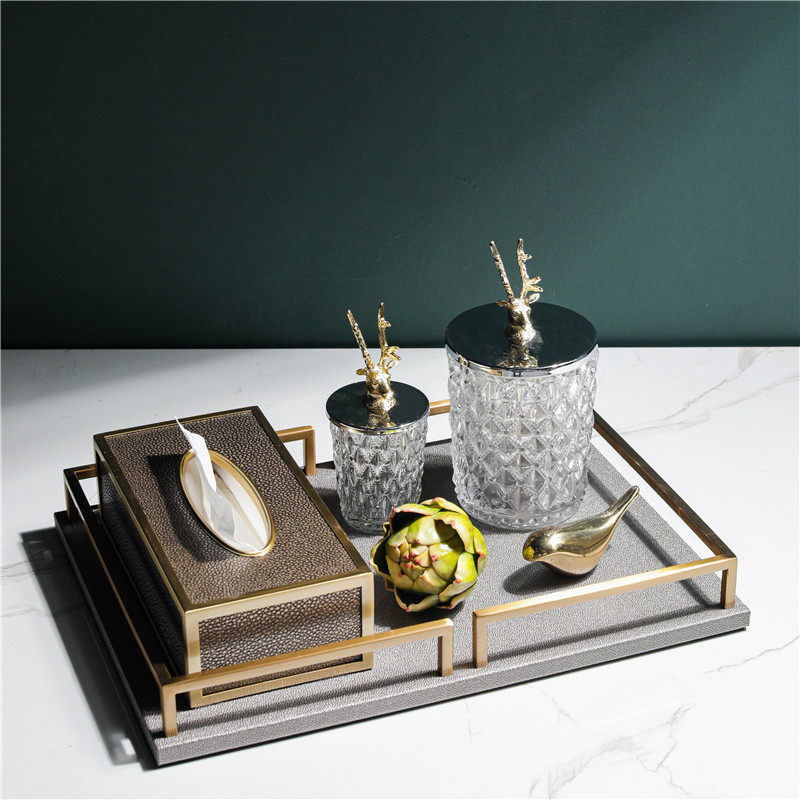 Light luxury storage set (the set is more cost-effective) high-grade leather tray high-grade leather tissue box large deer head storage tank small deer head storage tank copper bird pineapple head
