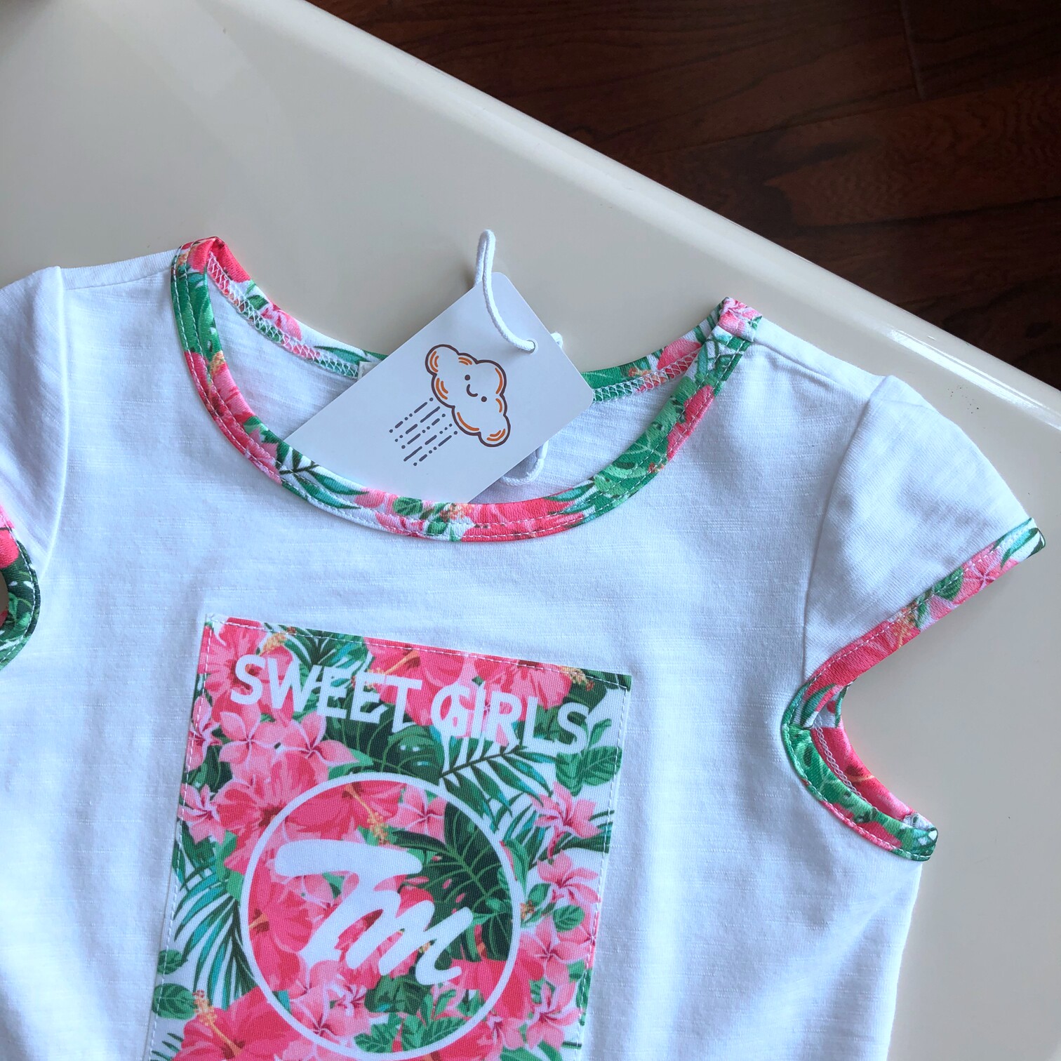 Cut label girls short-sleeved T-shirt skirt stitching mid-length baby top-20 4 24