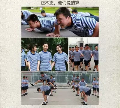 Physical fitness suit men's and women's summer striped short-sleeved round neck sea soul shirt outdoor training suit sports quick-drying T-shirt
