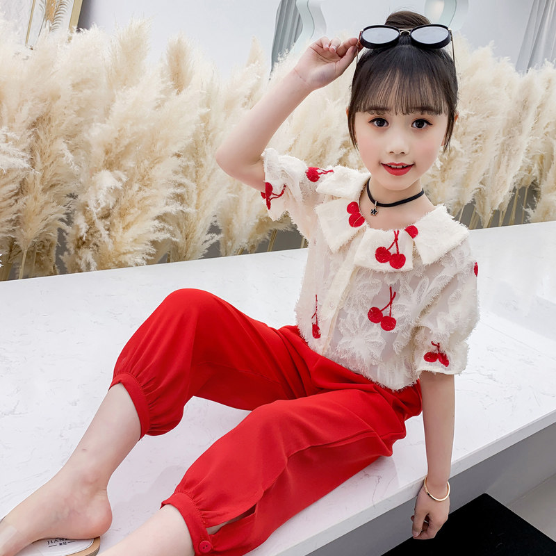 Girls summer suit 2023 new children's little girl casual foreign style fashionable net red children's clothing two-piece summer