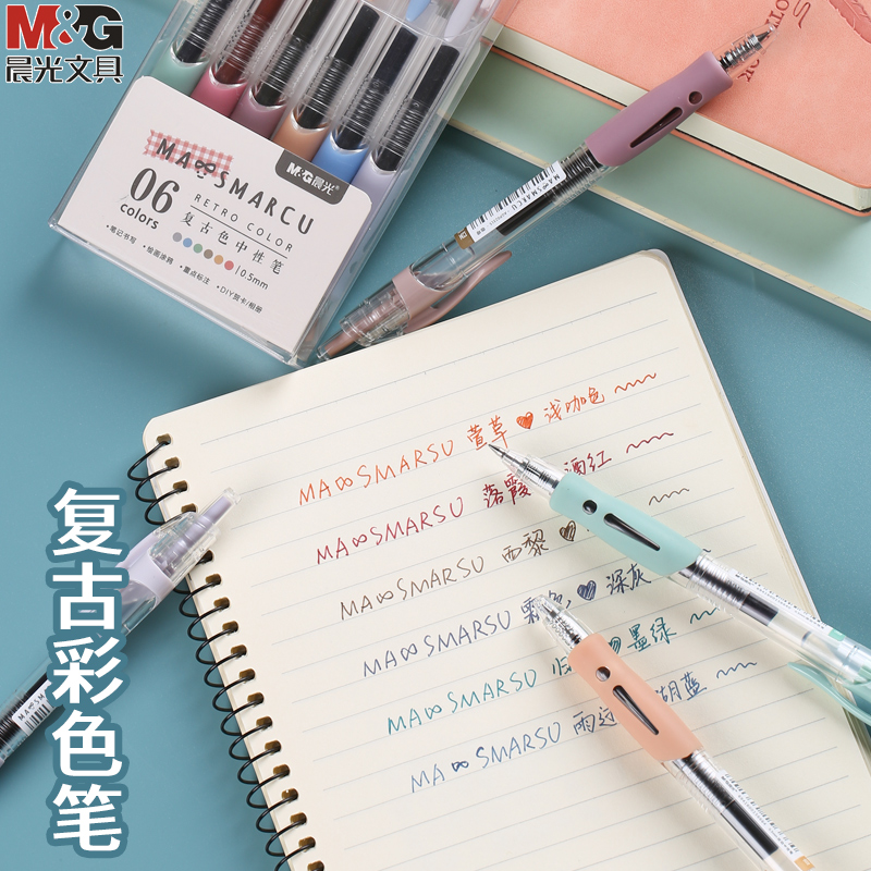 Morning light retro pen agp02315 students use press speed dry color neutral pen set to make notes special color pen multicolor ball pen retro pen pen color press notebook pen